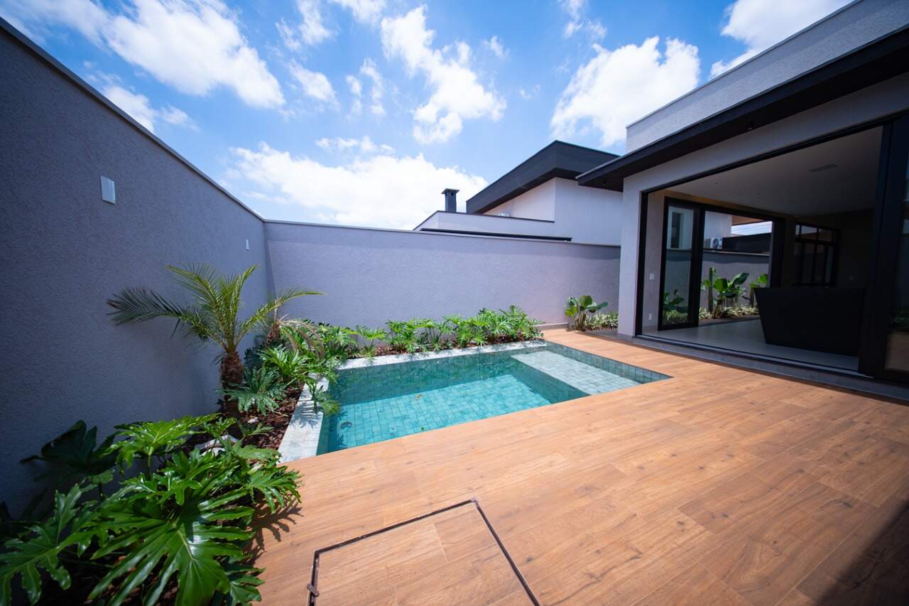 Casa térrea no Condomínio Quinta dos Ventos, em Ribeirão Preto/SP. Com área de terreno de 250m² e área construída de 154m², esta residência combina conforto, funcionalidade e elegância em um projeto contemporâneo de alto padrão. Os ambientes amplos e integrados proporcionam praticidade e bem-estar, destacando-se pelas três suítes com móveis planejados, living de estar e espaço gourmet integrados, lavabo, banheiro externo, piscina iluminada e aquecida, além de lavanderia com ótimo aproveitamento.