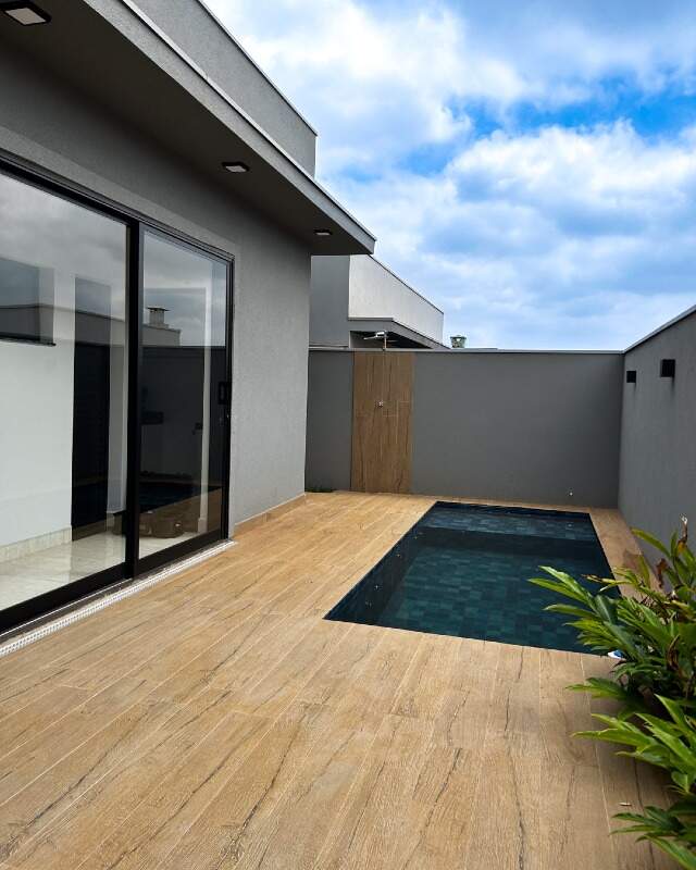 Casa térrea no Condomínio San Marco Ilha Modena em Ribeirão Preto/SP. Com terreno de 250,00m² e área construída de 150,00m². O living de estar e o espaço gourmet foram planejados para oferecer conforto e integração, proporcionando praticidade e elegância no dia a dia. O imóvel conta com três suítes completas com armários Casa Brasil, sala com pé-direito elevado e jogos de iluminação, lavabo, lavanderia, piscina iluminada e aquecida, além de paisagismo completo. Possui aquecimento solar, infraestrutura para ar-condicionado e aparelhos instalados em todos os ambientes. A cozinha está equipada com cooktop, coifa, forno elétrico e micro-ondas, além de coifa na área da churrasqueira. Box e espelhos já instalados complementam o acabamento.